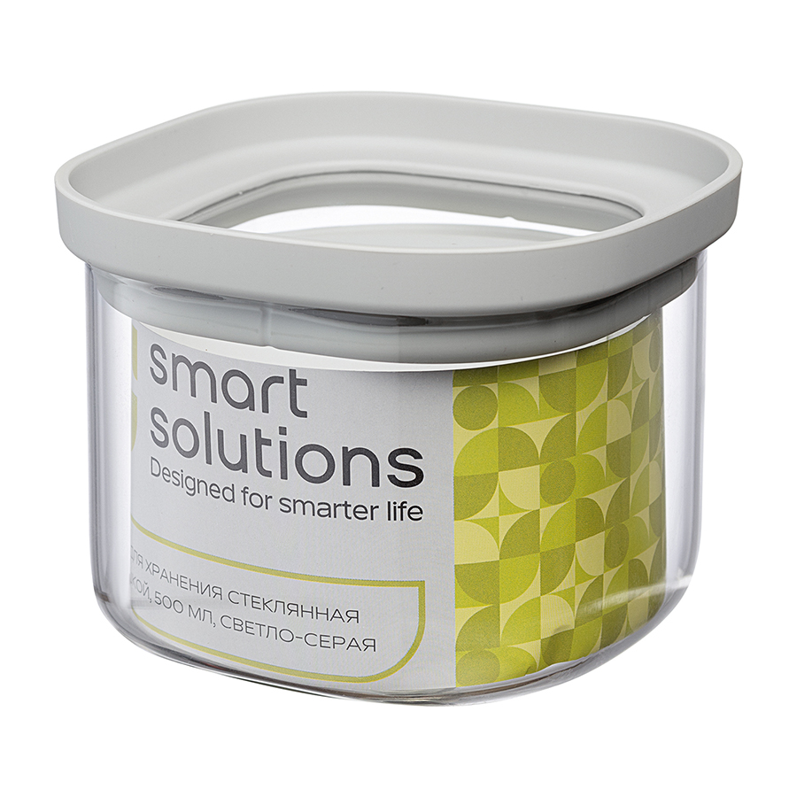 Банка для хранения стеклянная с крышкой, 500 мл, светло-серая, Smart Solutions