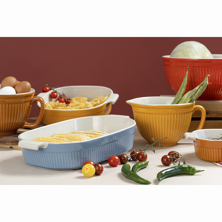 "Емкость для запекания серии Soft Ripples из жаропрочной каменной керамики идеально подходит для приготовления выпечки, а также тушения и томления продуктов. За счет быстрого и равномерного прогревания формы блюда хорошо пропекаются, получаются сочными и сверху покрываются аппетитной корочкой. Наличие ручек обеспечивает аккуратное извлечение готовой пищи из духовки и удобное ее перемещение. Благодаря природным антипригарным свойствам материала не требуется добавление большого количества масла. Керамическая посуда является экологичной, не деформируется, не впитывает запахи и загрязнения. Рельефный узор на внешней поверхности стенок и интересное цветовое сочетание делают дизайн оригинальным.