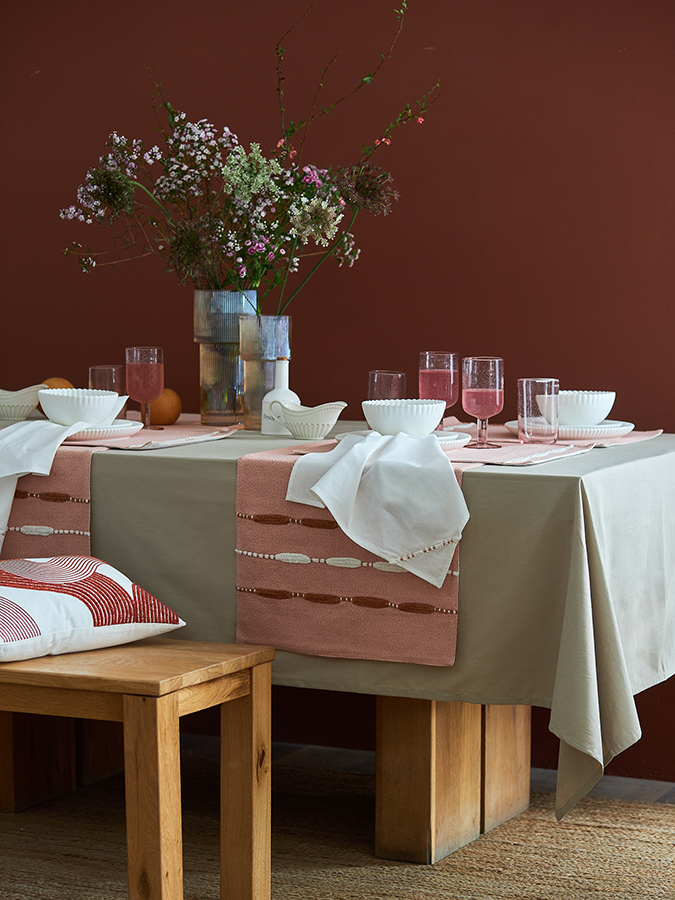 "Дорожка на стол Feather mood из коллекции Ethnic станет прекрасным дополнением к текстильным салфеткам, свечам и другому декору. С ее помощью вы сможете выделить отдельные блюда, обозначить места для посадки гостей, а также добавить в сервировку интересный акцент.