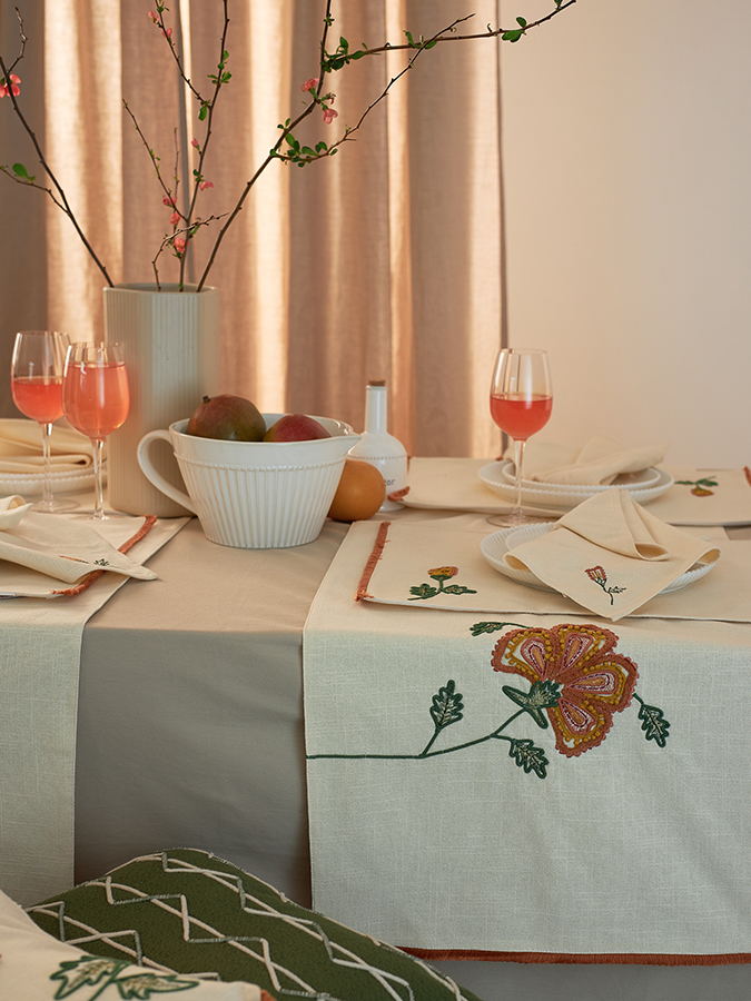 "Дорожка на стол Spring flower из коллекции Ethnic – простой способ создать в интерьере уютную атмосферу и “оживить” сервировку. Цветочные мотивы вызывают приятные эмоции, делают пространство более привлекательным и гармоничным.