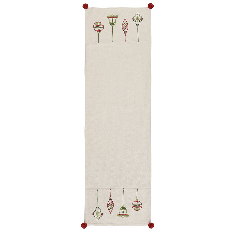 "Дорожка с вышивкой Christmas decorations из коллекции New Year Essential – оригинальный текстильный аксессуар, который превратит повседневную сервировку в праздничную, а вашу кухню или столовую – в стильное и уютное пространство.