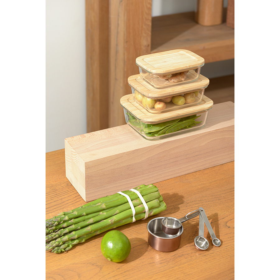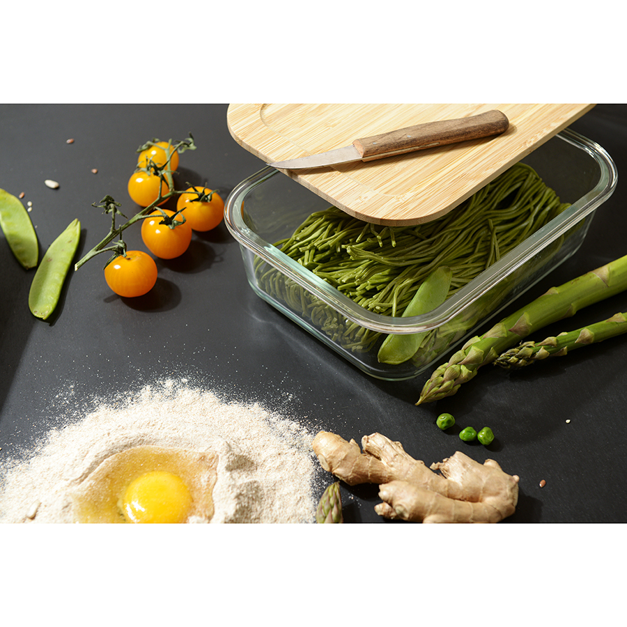 Контейнер с бамбуковой крышкой отлично подойдет для хранения и запекания продуктов, в том числе готовых блюд.