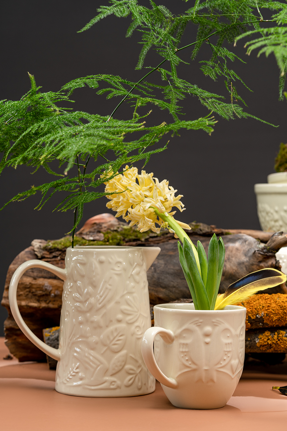 Кувшин из коллекции Birds of Paradise – качественная посуда из экологичной каменной керамики, которая великолепно вписывается в любую сервировку и делает интерьер кухни более уютным. Отличительной особенностью серии является объемный узор природной тематики, добавляющий дизайну элегантные нотки. Благодаря высокой прочности и устойчивости материала к износу изделие не теряет привлекательный внешний вид на протяжении всего срока службы. Покрытие глазурью облегчает уход, обеспечивает декоративность и дополнительную защиту от внешних воздействий. Такой кувшин идеально подойдет для холодных и горячих напитков.