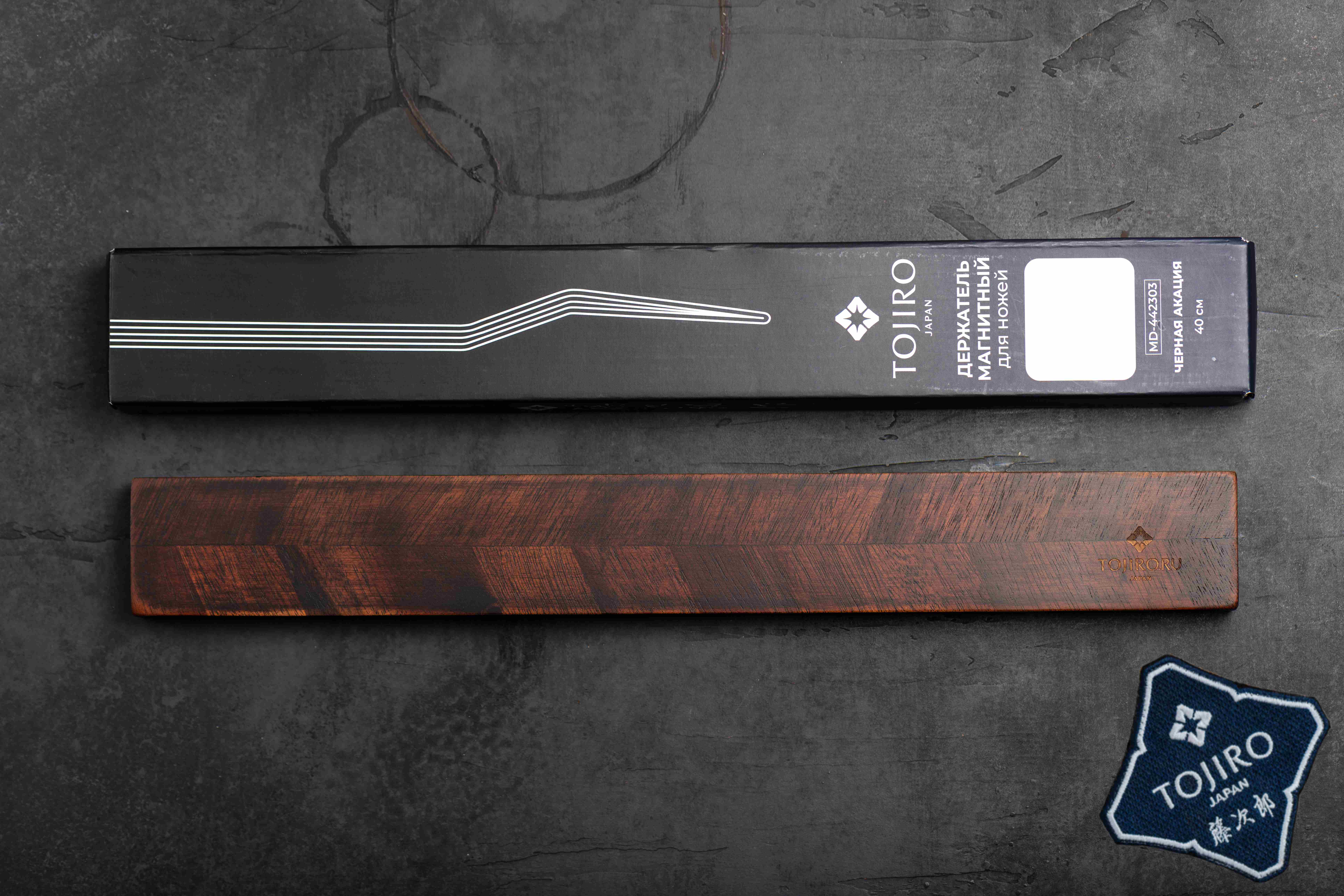 Представляем уникальный магнитный держатель для ножей из акации темного дерева (MD-442303) длиной 40 см. Подходит для 6-7 ножей, например, для суши, обвалочных и поварских, обеспечивая удобное хранение и гигиеничность. О