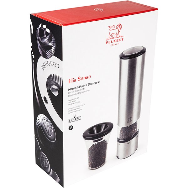 Мельница для перца электрическая на батарейках 20 см, акрил, нержавеющая сталь, ELIS SENSE PEUGEOT, Франция