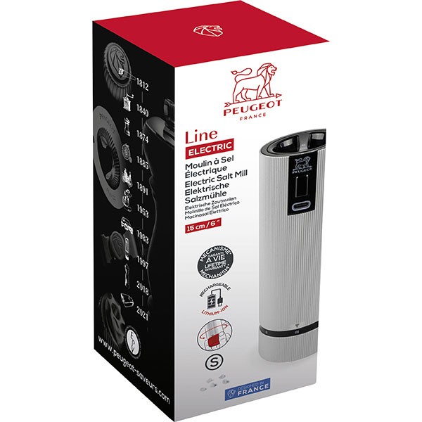 Мельница для соли электрическая с USB зарядкой 15 см, алюминий, цвет графит, LINE PEUGEOT, Франция