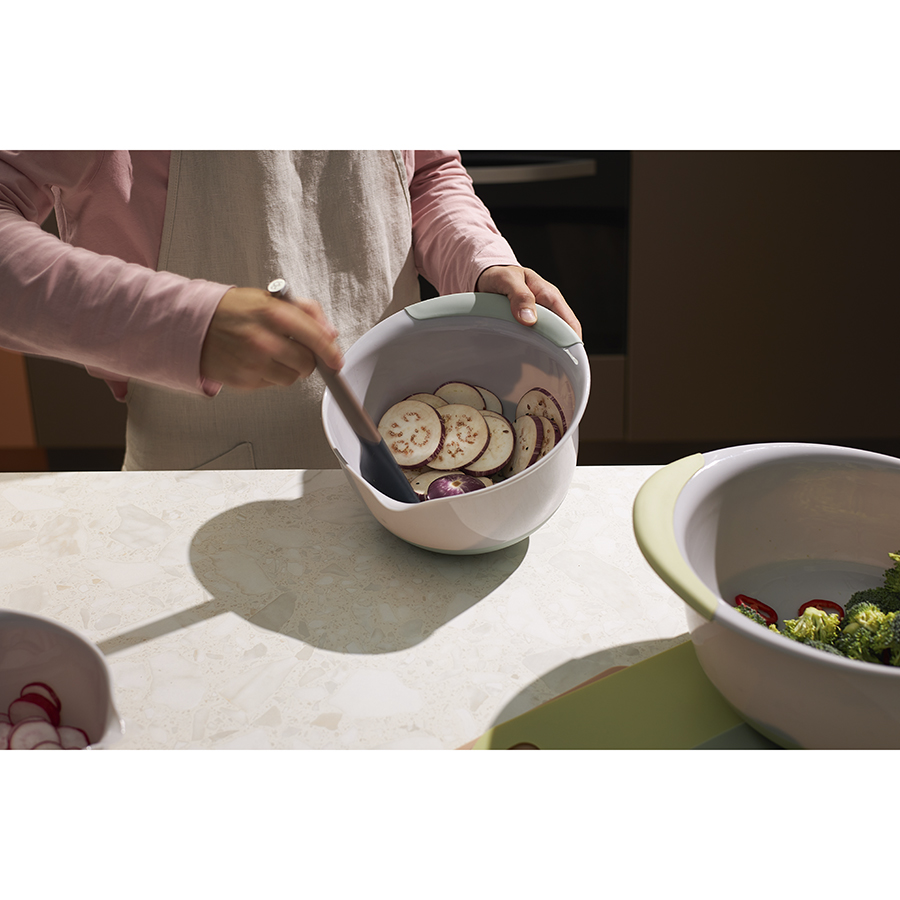 "Набор емкостей для смешивания разных размеров Mixy облегчит процесс готовки и за счет разноцветного дизайна станет ярким акцентом в интерьере кухни.