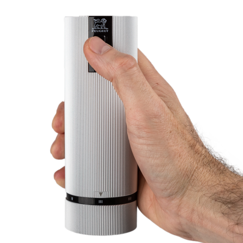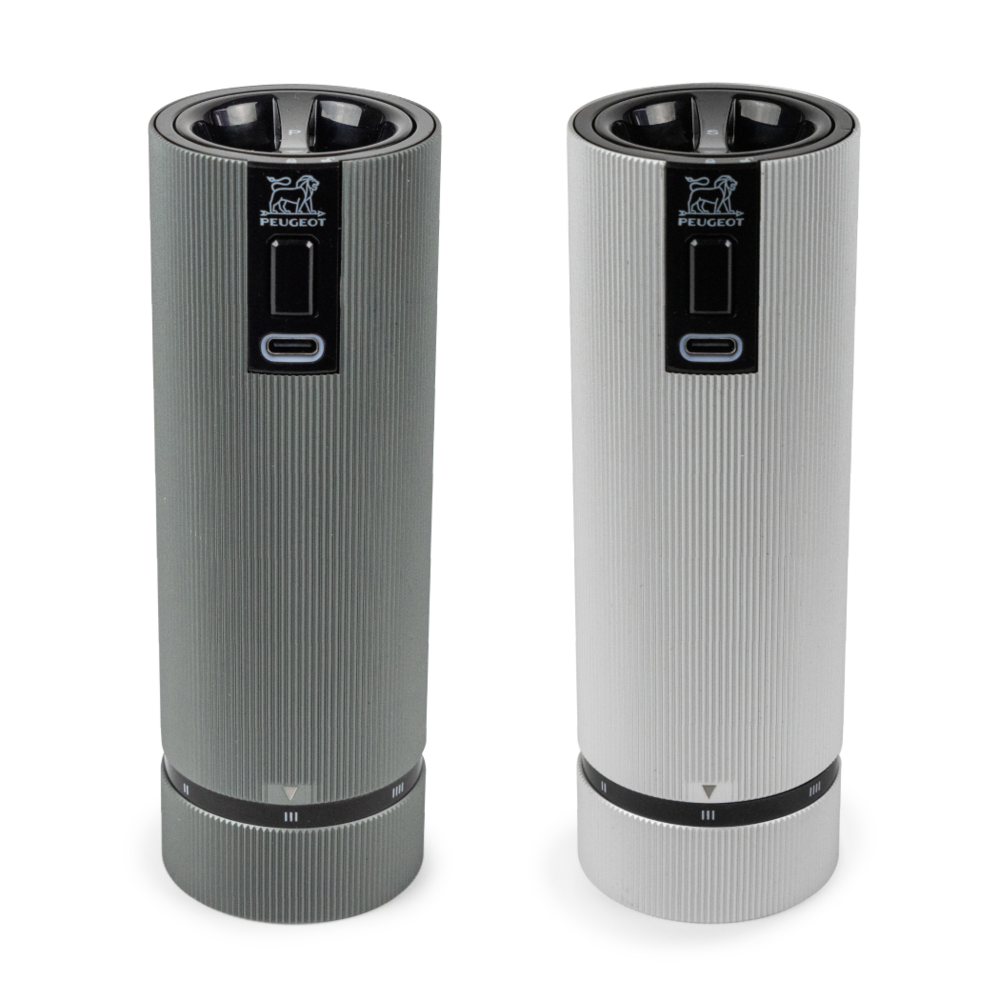 Набор из 2-х электрических мельниц для соли и перца, 15 см, карбон + алюминий, 6 степеней помола, LINE Zirlion, PEUGEOT, Франция