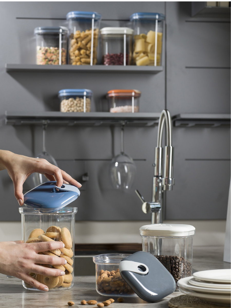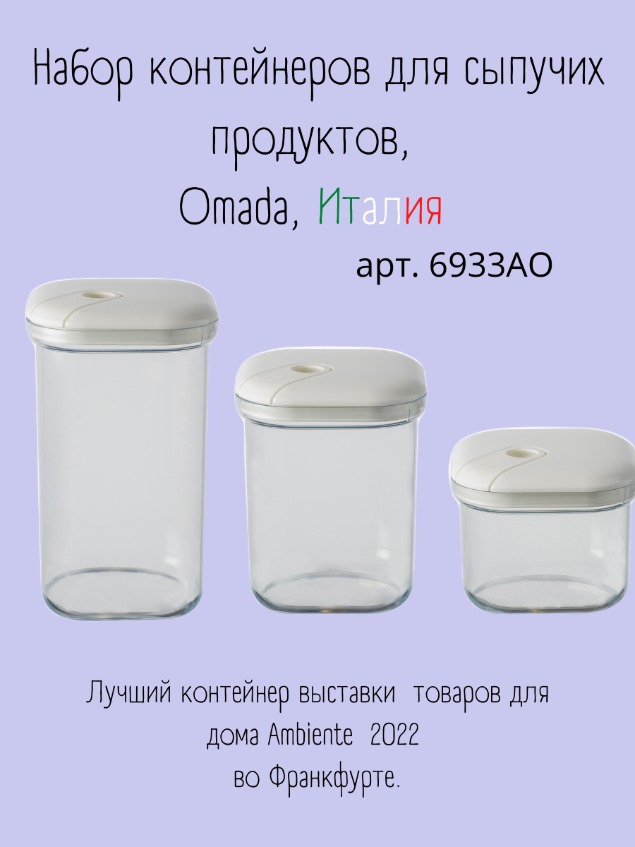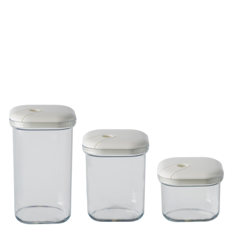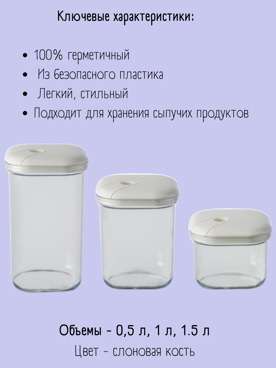Набор из 3-х емкостей для хранения квадратных 500/1000/1500 мл, цвет слоновая кость, серия Pull box, OMADA