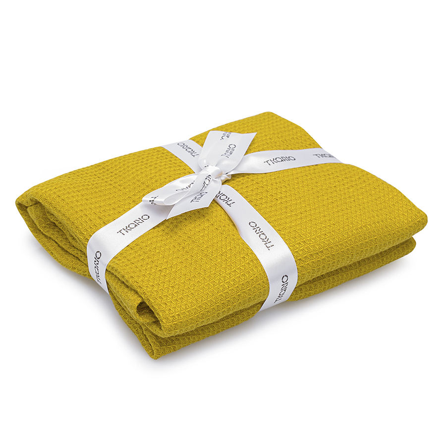Набор из двух кухонных жаккардовых полотенец горчичного цвета из коллекции Essential, Tkano
