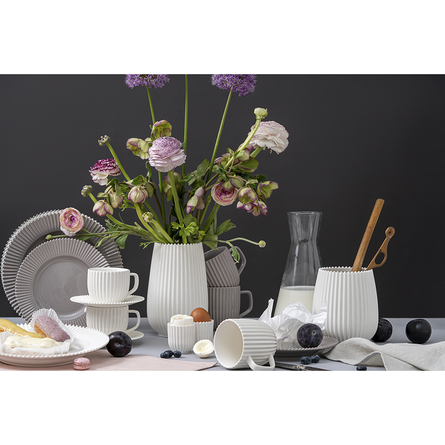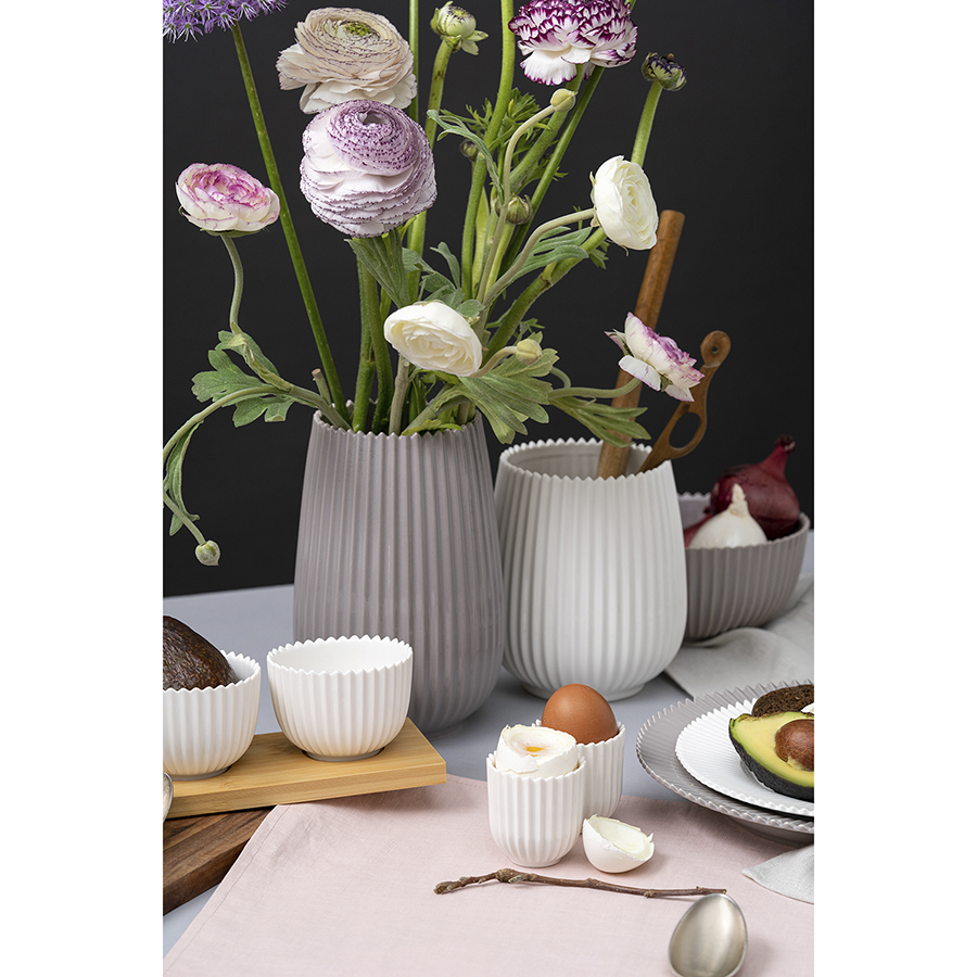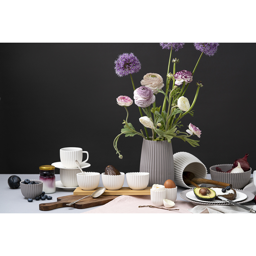 "Изящные белые подставки для яиц наверняка понравятся тем, кто считает завтрак самым главным приемом пищи и хочет, чтобы он был безупречным даже в будний день. Подставки изготовлены из фарфора и имеют рифленую поверхность c оригинальным зубчатым краем — это фирменная черта коллекции Edge. В набор входят две подставки, которые при желании можно дополнить чашками и тарелками с таким же дизайном.