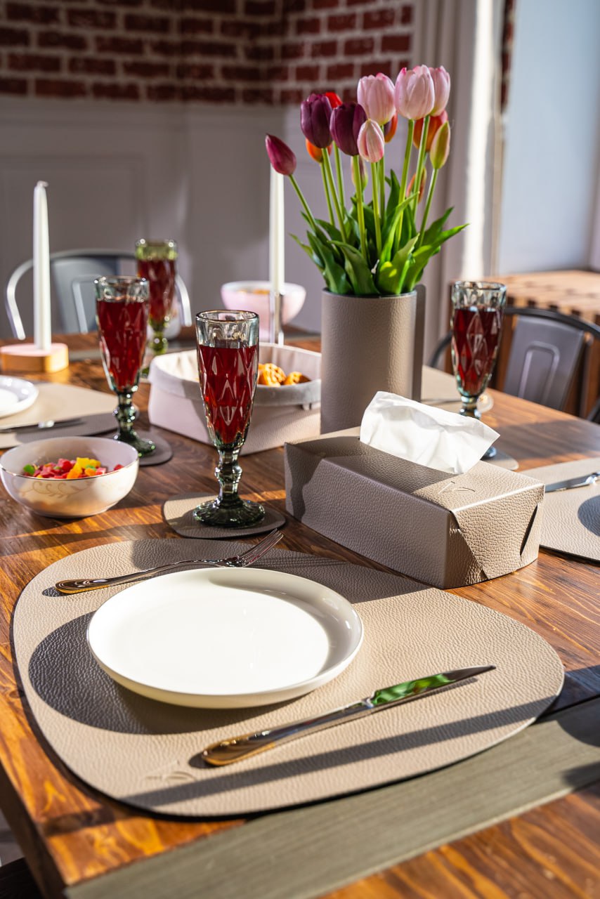 Набор из подстановочной салфетки фигурной 37x44 см и подстаканника, цвет кремовый, VERO