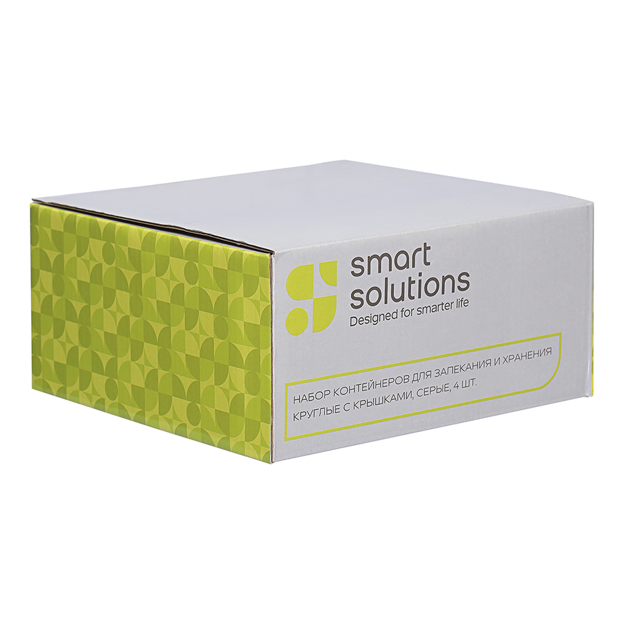 Набор контейнеров для запекания и хранения круглые с крышками, серые, 4 шт., Smart Solutions