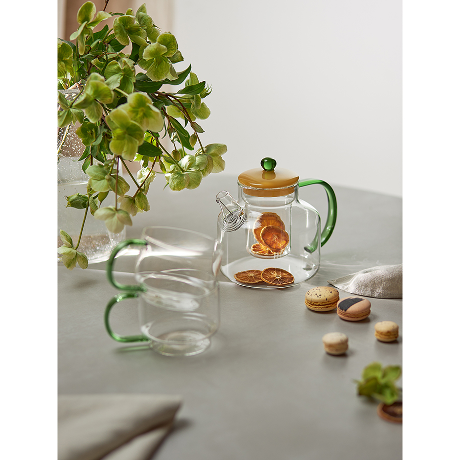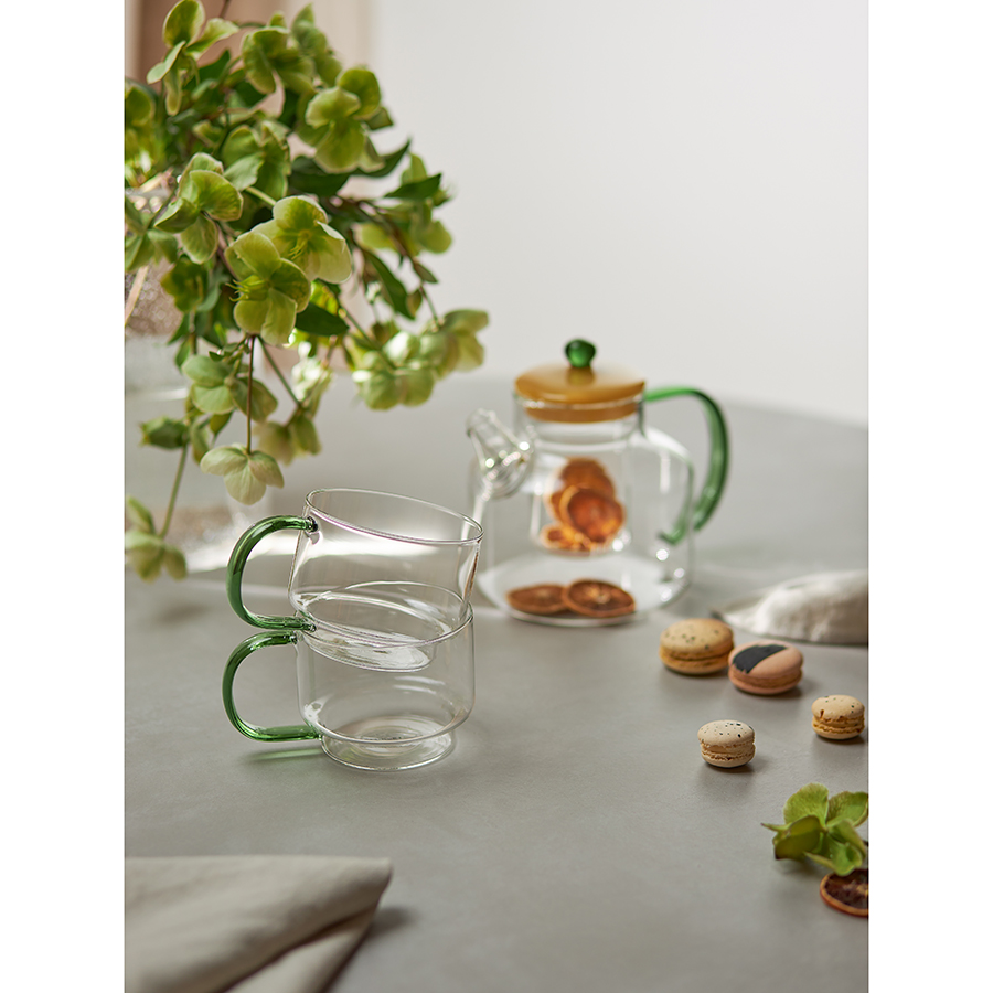 Материал: боросиликатное стекло. Размеры: 13,8х9,8х7,7 см. Объем: 400 мл. Цвет: прозрачный/зеленый. Количество в наборе: 2 шт.