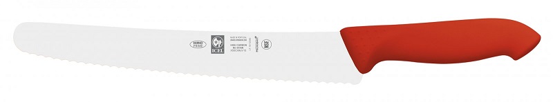 Нож кондитерский с волнистой кромкой 250/380 мм, красная антибактериальная ручка, серия HoReCa, Icel