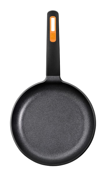 Ручка произведена из термостойкого материала, имеет эргономичную форму, что позволяет легко штабелировать сковородки при хранении
