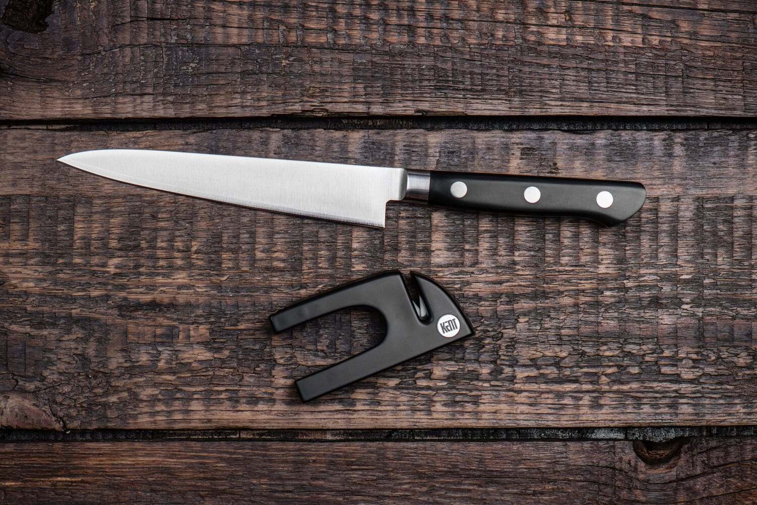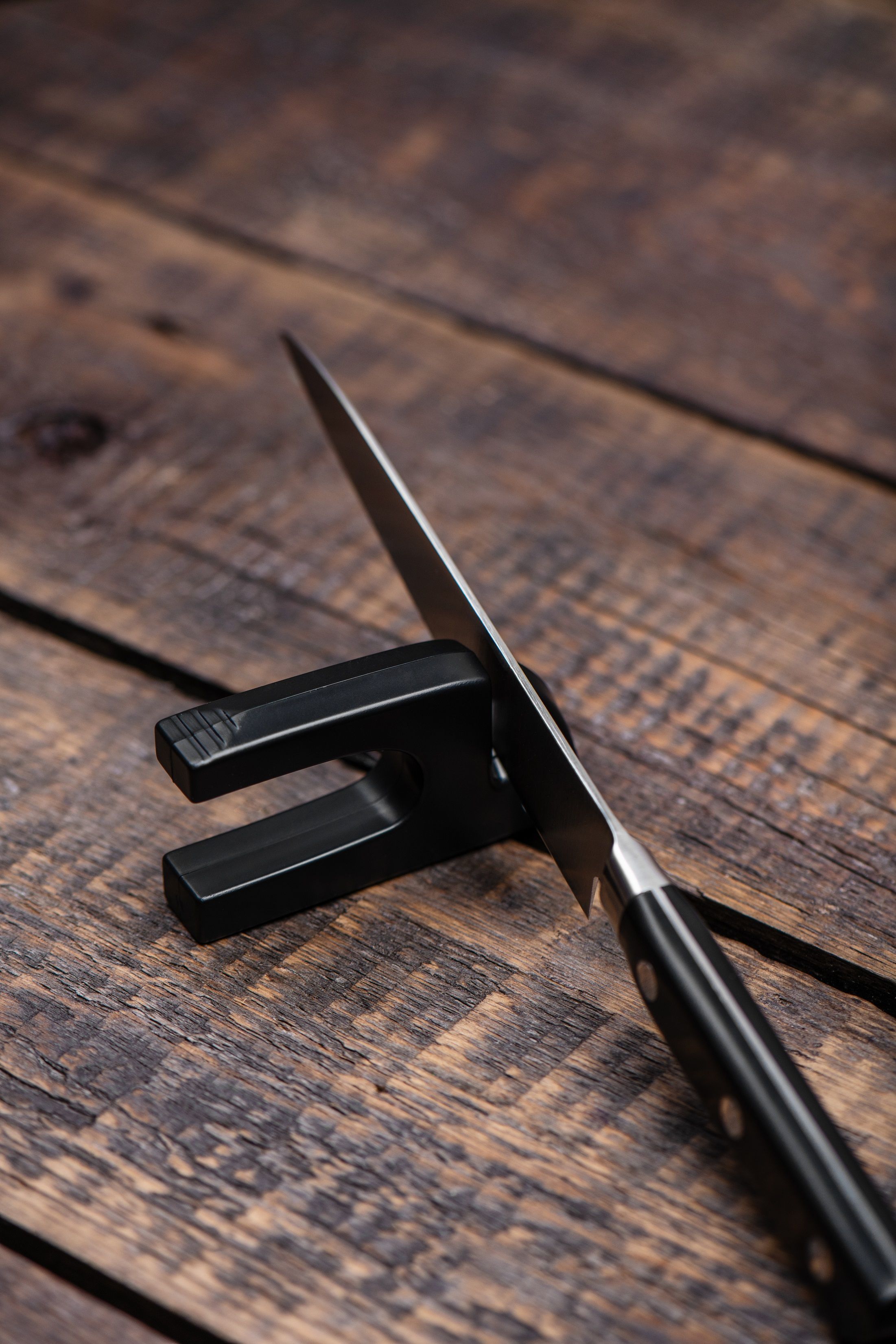 Универсальная точилка для кухонных ножей предназначена для заточки и исправления серьёзных изъянов на лезвии.